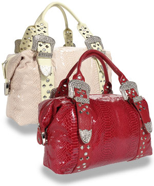 Rhinestone Buckle Snakeskin Satchel Handbag