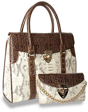 Snakeskin Embossed Classic Handbag